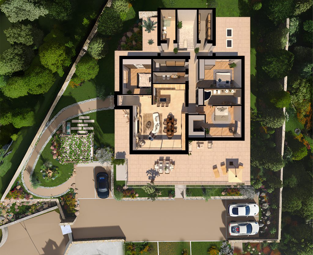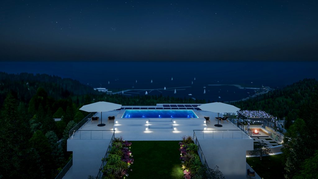• Spazi esclusivi: 1000 mq di parco privato, ampi terrazzi fronte mare e ambienti luminosi.