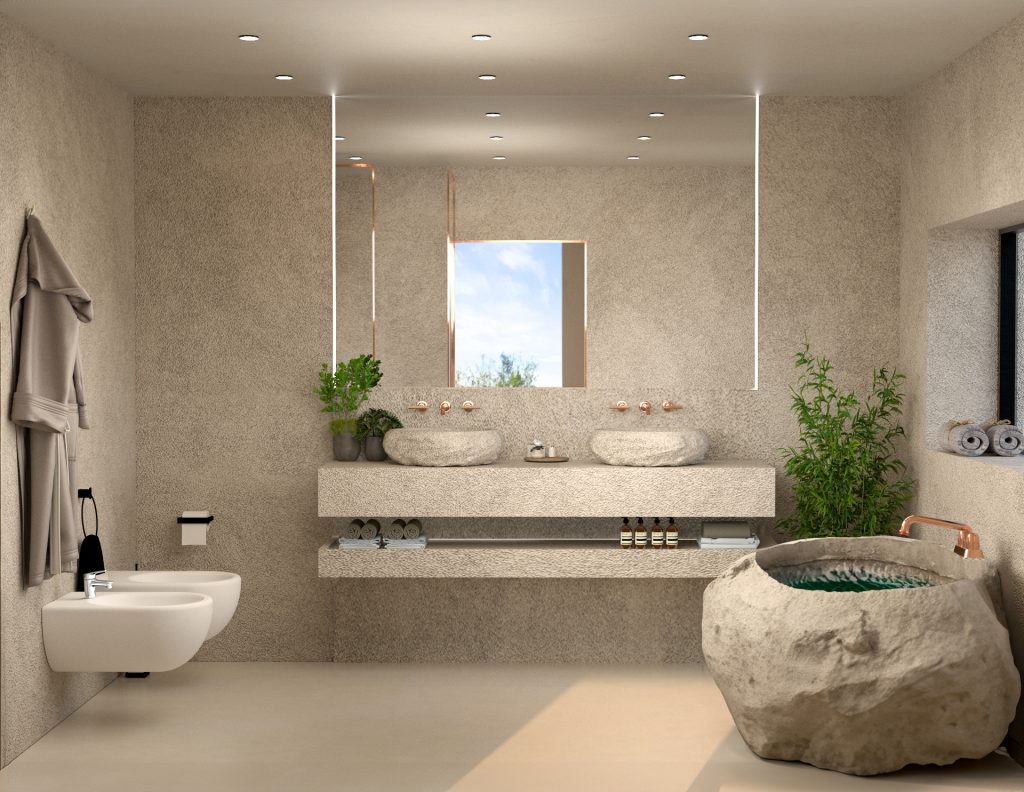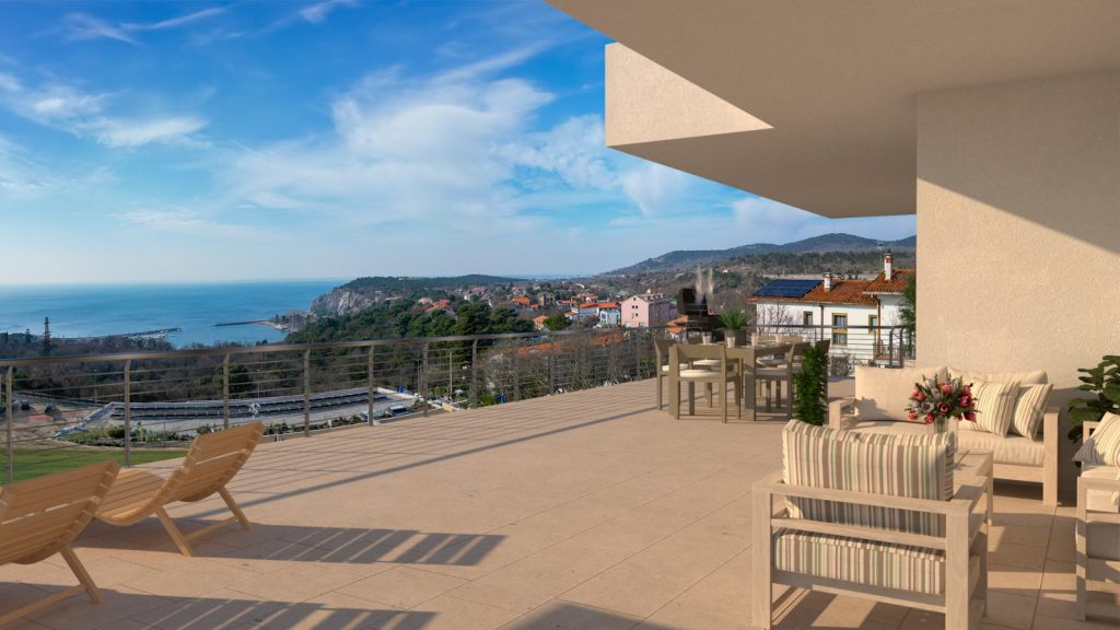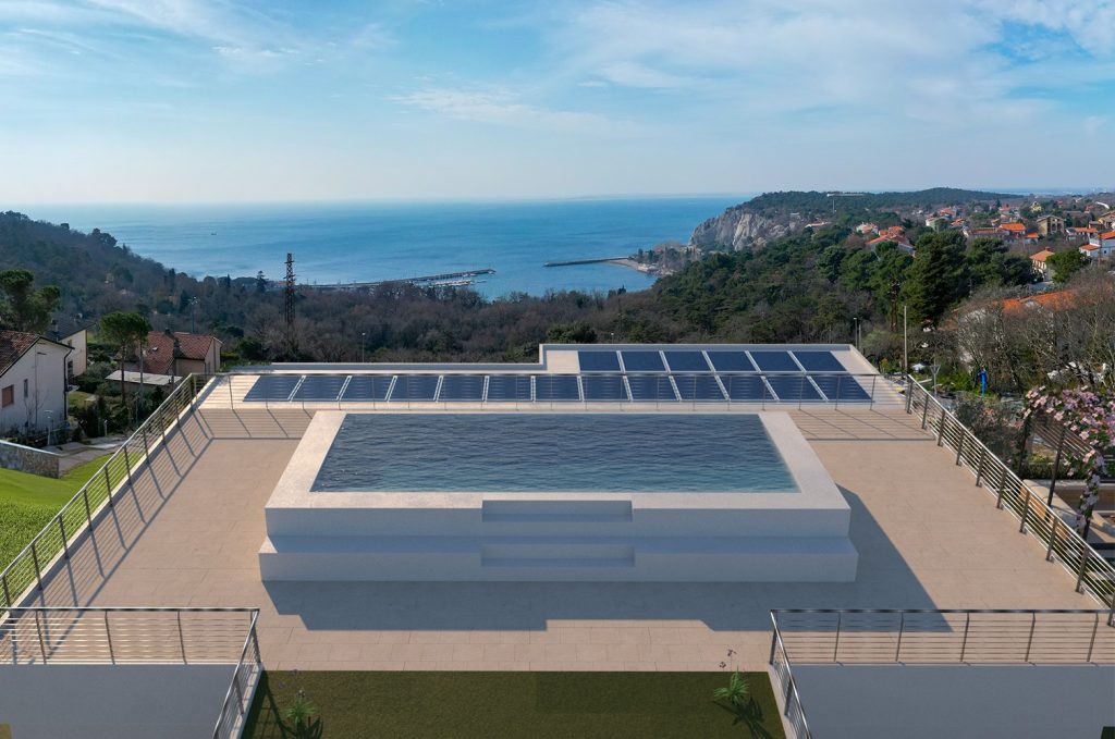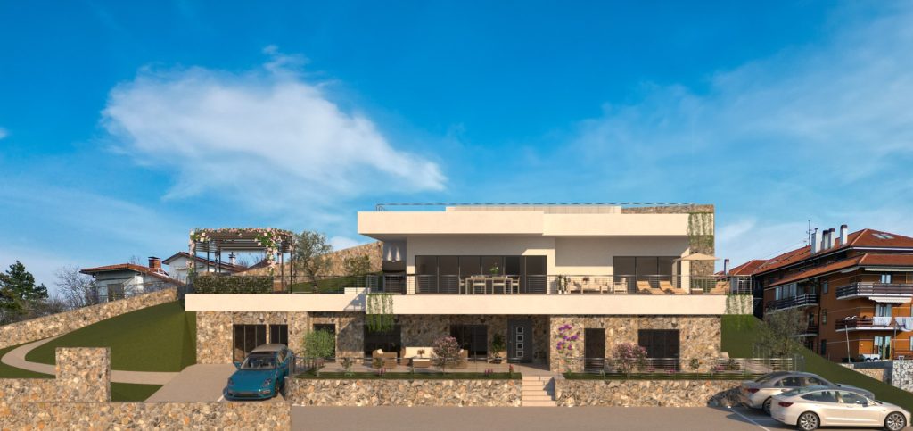 • Design contemporaneo e sostenibilità: costruite in classe energetica A4, si integrano perfettamente nel paesaggio grazie all’uso di materiali naturali come la roccia carsica.